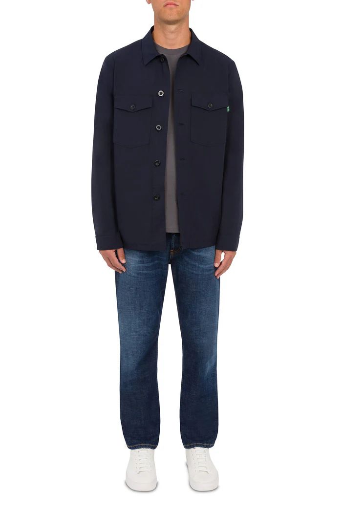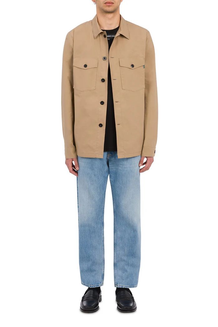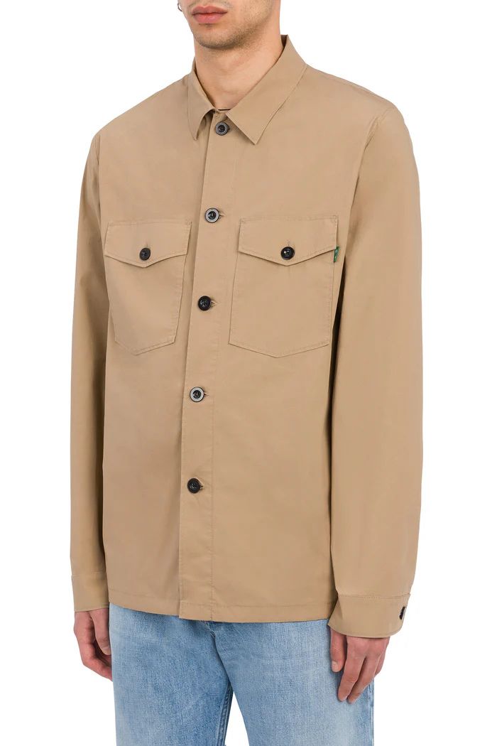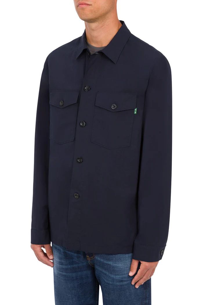 Fit regolare, chiusura frontale con bottoni, due tasche a filetto sui fianchi e due tasche a patta sul petto, polsini con bottone, orlo dritto, dettaglio logo