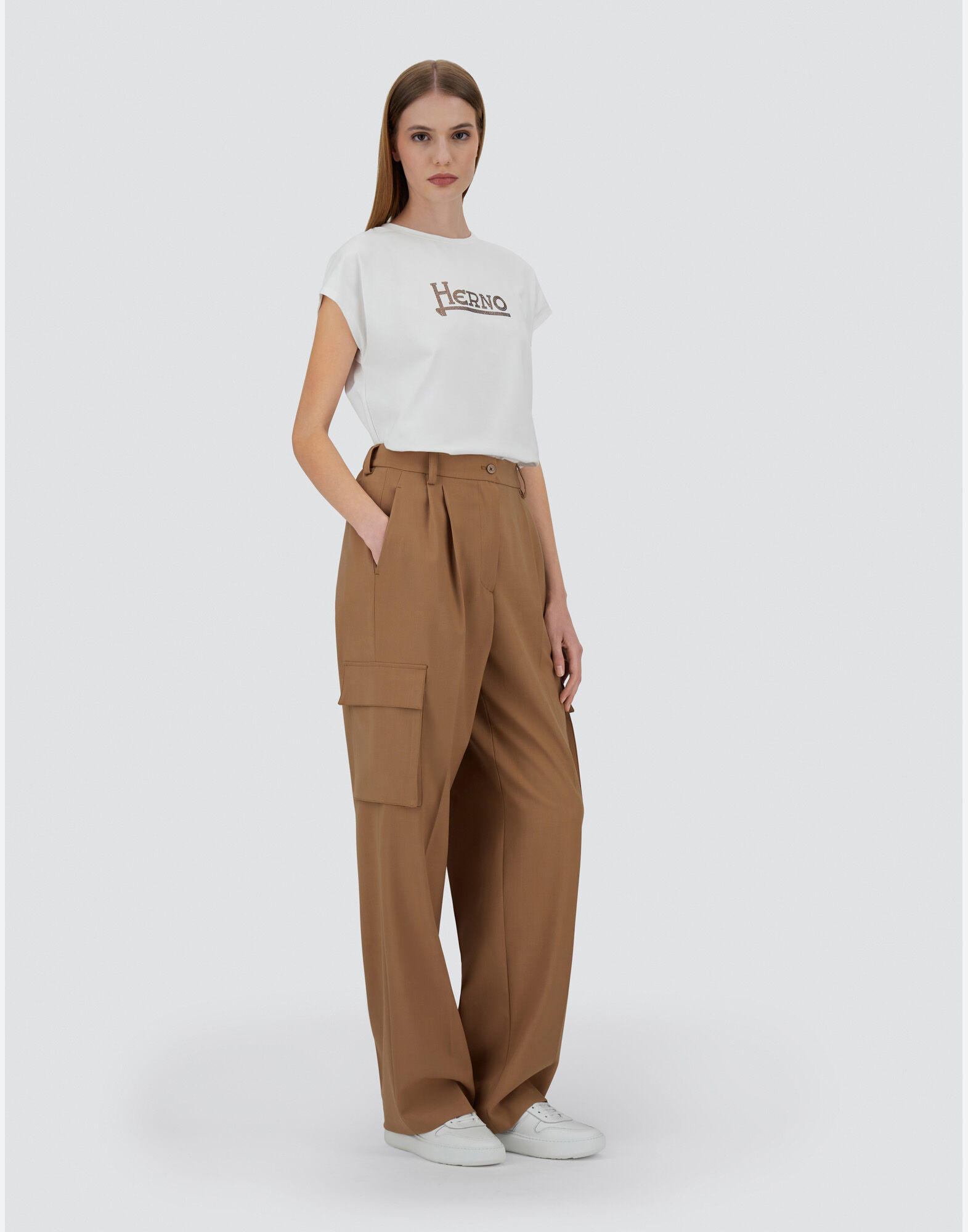 Con gamba ampia, pinces e tasche funzionali, il modello interpreta il quiet luxury Herno per donare una nota sofisticata ai look di tutti i giorni.