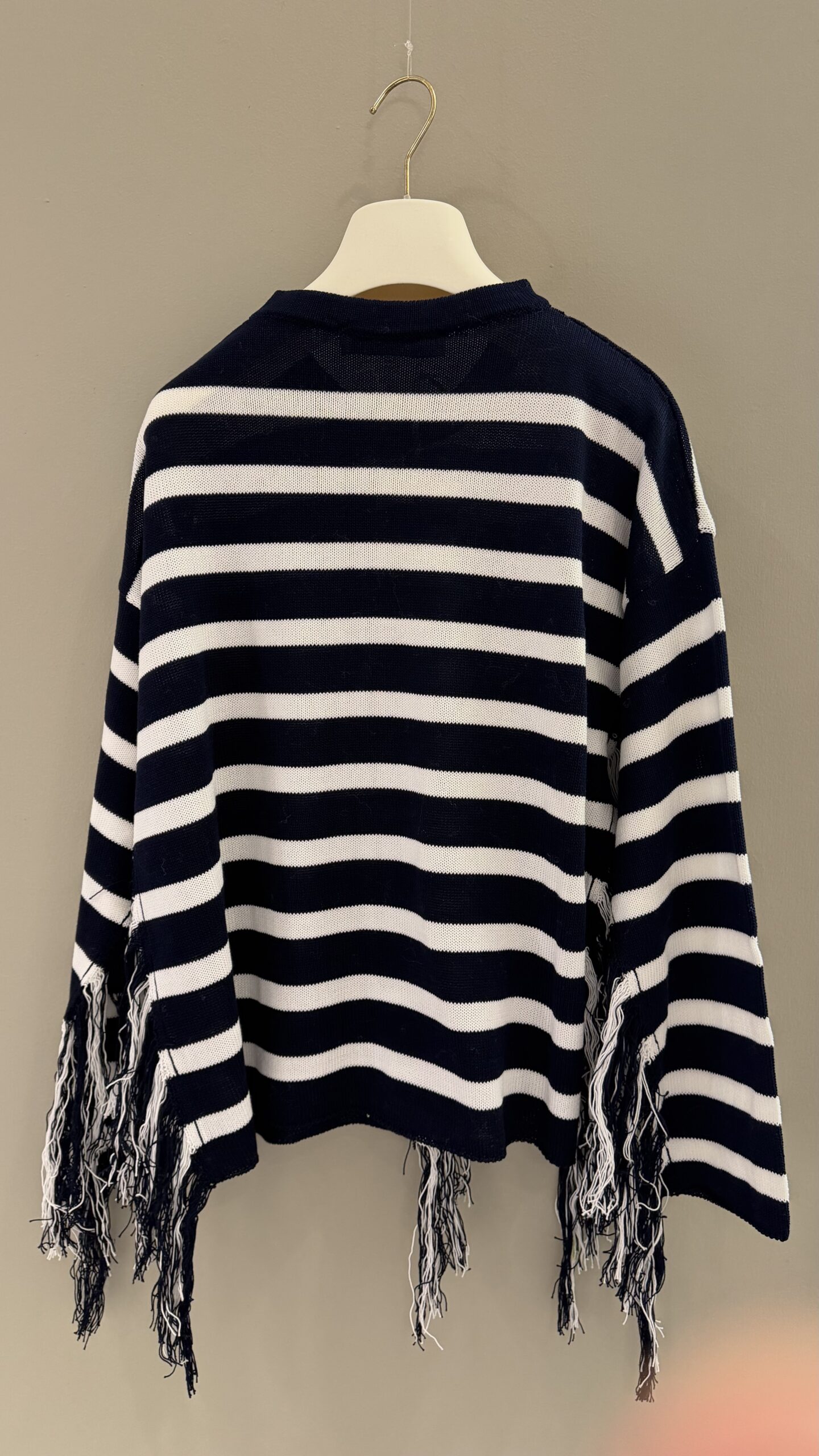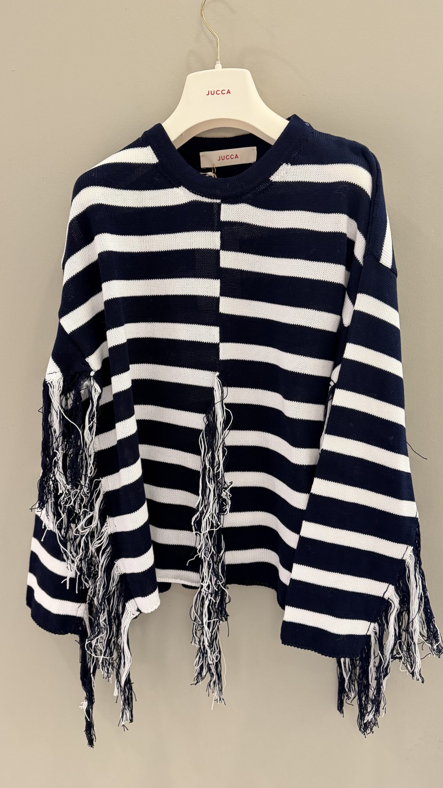 Questo squisito maglione in puro cotone di Jucca colpisce per il suo design intramontabile. La distintiva fantasia a righe e il classico girocollo conferiscono al modello un’eleganza sportiva. Le spalle scese e le finiture a costine assicurano una silhouette moderna e un comfort di prima classe. le frange un classico di jucca .Questo capo in maglia di alta qualità è stato sapientemente Made in Italy.
