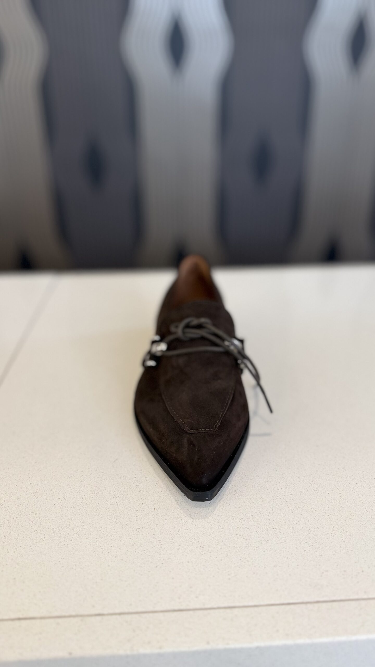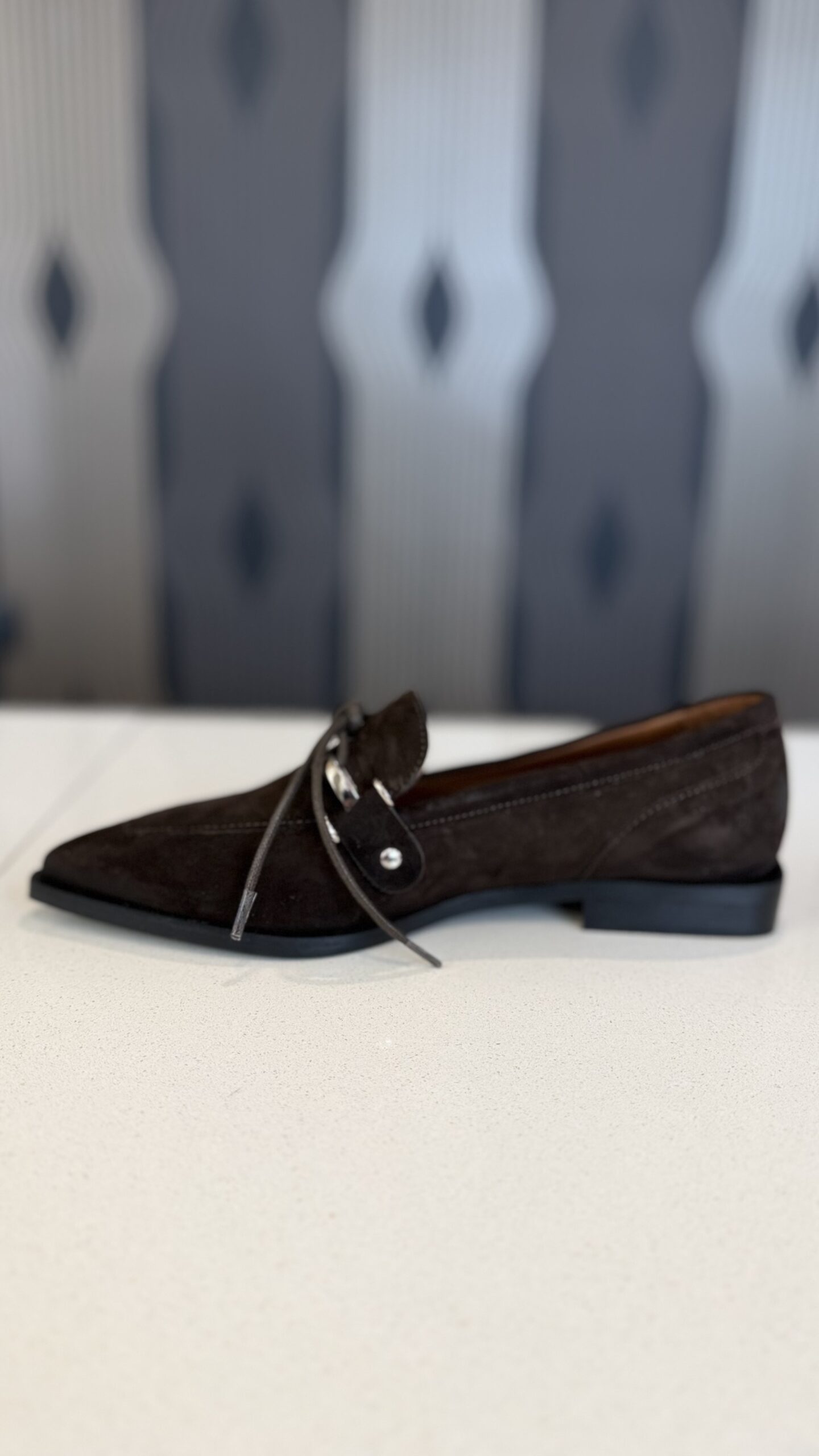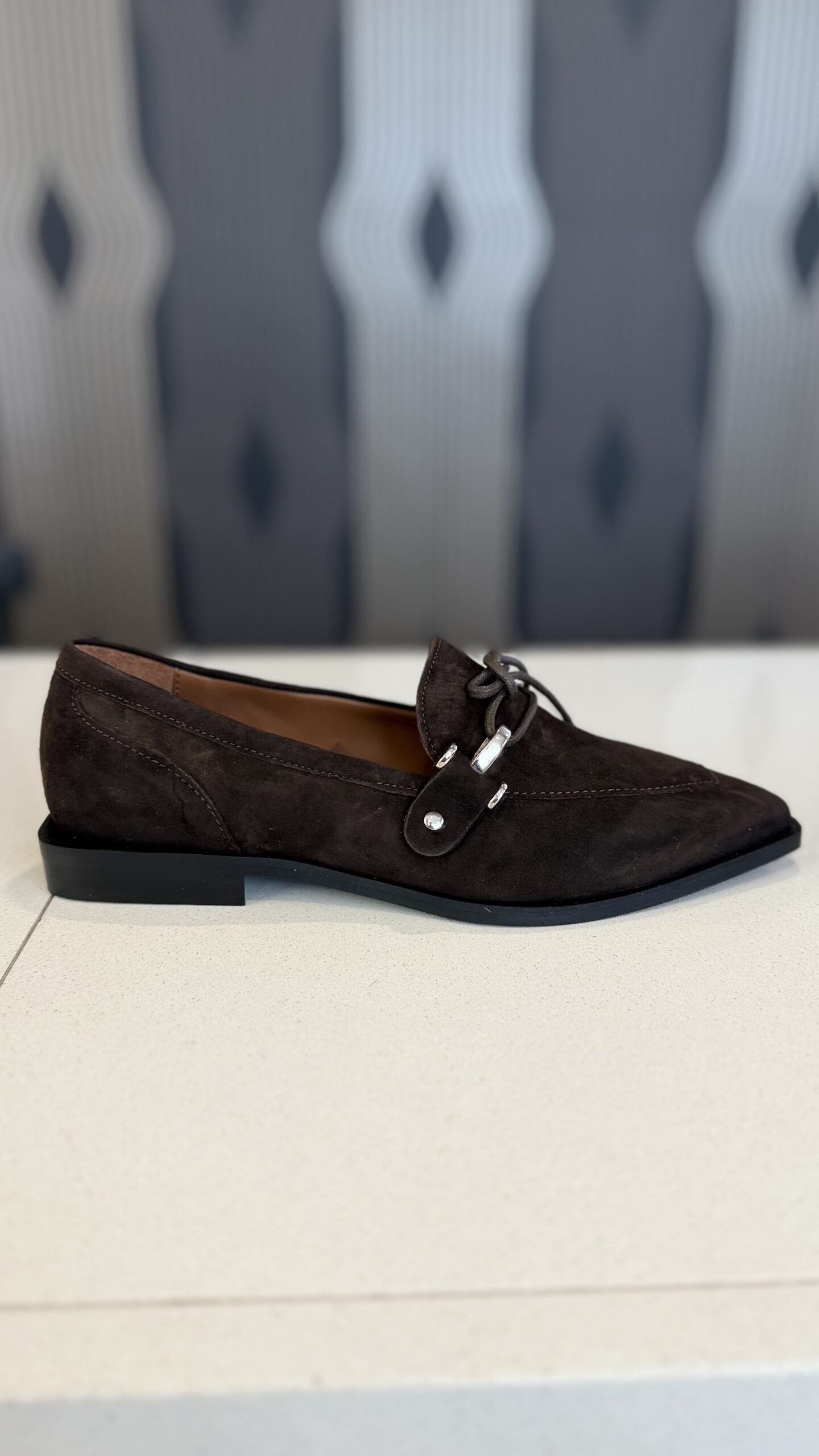 Mocassino scamosciato con laccio testa moro
